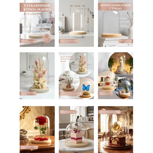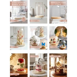 Стеклянная колба или как ее еще называют стеклянный купол, служит для защиты от пыли предметов искусства и рукоделия или иных предметов. Купить купол колбу из стекла прозрачную можно, но как правило она продается уже с розой внутри, а у нас Вы можете купить его отдельно и разместить в нем свою работу. При выборе колбы следует учитывать в первую очередь размеры композиции или отдельного цветка. Также у нас Вы найдете их с вариантами подсветки. Само изделие состоит из стеклянного купола и деревянного основания и получается методом выдувания.